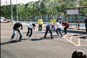 | かなりの盛り上がりを見せた 『景品争奪ぐるぐるバット20m走』 |